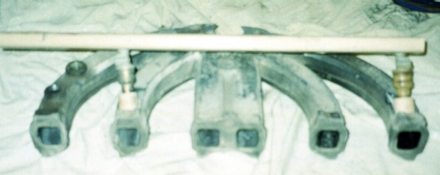 ![]() 1.6 Finished manifold: head view - note the lateral positioning of fuel rail supports