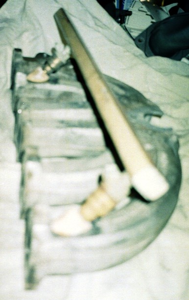 ![]() 1.2 Its time to get an idea as to where the fuel rail will go. Two scrap injectors countersunk into a hockey stick along with wooden bungs all held together with hot melt. Space reserved! |