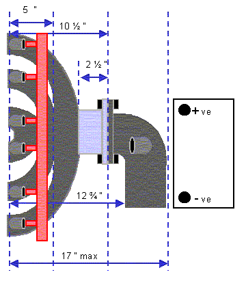![]() 1.0 Aluminum single barrel needs to be connected to the T-bird aluminum inlet tube. This dimension determined by blower (right) and battery (left) clearances. |
