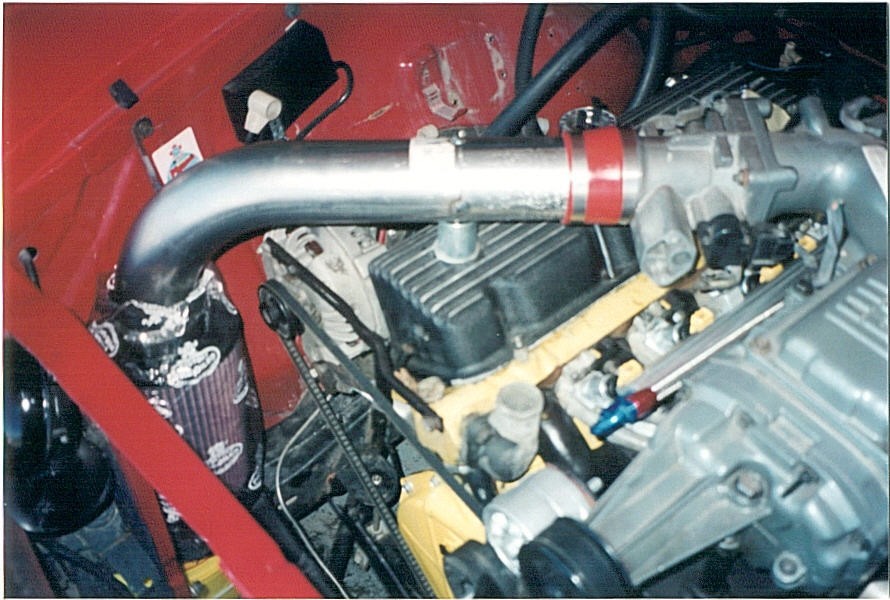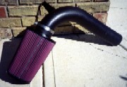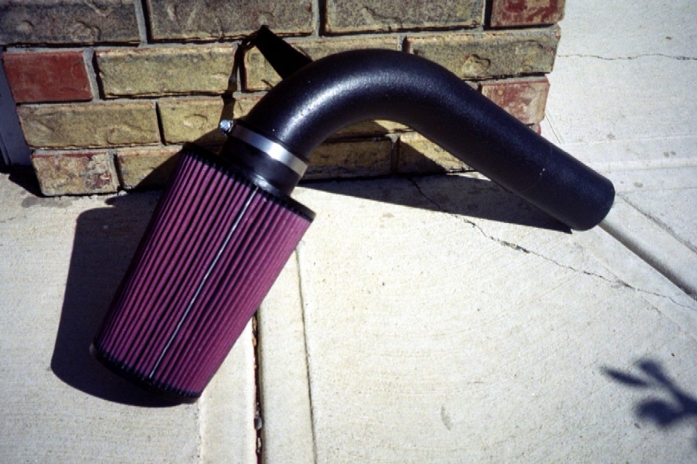 ![]() 2.2 3" mandrel bent tubing with a support bracket off to fender bolt. K&N filter element with textured black 'truck bed liner paint'! |