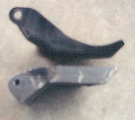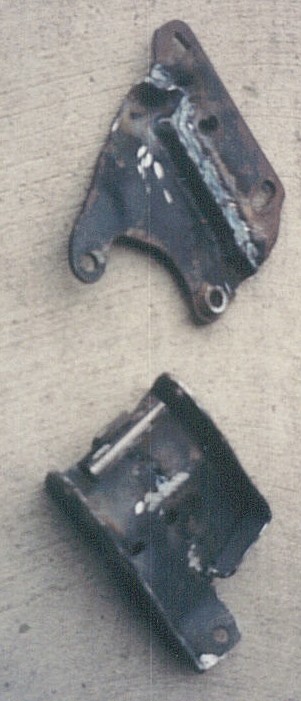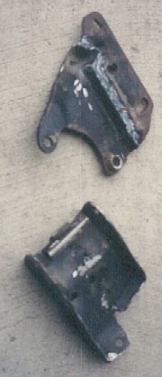 2.3 The power steering pump now would be run off the middle sheave. This pic shows the modified pump bracket (top) as well as a top view of the alt bracket. |