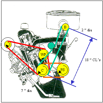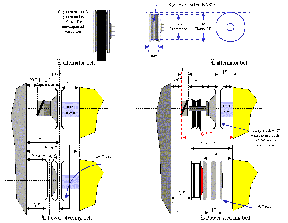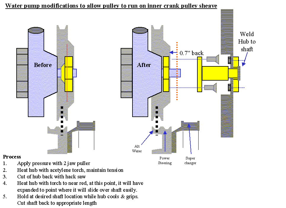 2.2 This also required the repositioning of the water pump pulley. See diagram. |