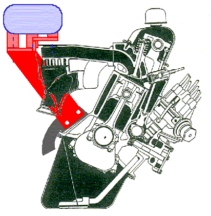 ![]() 1.1 Driver side view. Lower right: inlet tube/ manifold. Middle: diaphram which opens circulating bypass |